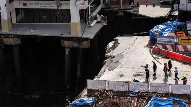থাইল্যান্ডের রাজধানী ব্যাংককে হঠাৎ করে সড়কের মাটি ধসে তৈরি হওয়া এক বিশাল সিঙ্কহোলে তিনটি যানবাহন তলিয়ে গেছে। এতে আশপাশের হাসপাতাল ও স্থানীয় বাসিন্দাদের সরিয়ে নেওয়া হয়েছে।