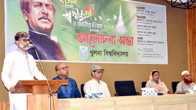 আজ ২৬ মার্চ (মঙ্গলবার) খুলনা বিশ্ববিদ্যালয়ে যথাযোগ্য মর্যাদায় মহান স্বাধীনতা ও জাতীয় দিবস উদযাপিত হয়েছে। দিবসটি উপলক্ষ্যে সকালে আচার্য জগদীশ চন্দ্র বসু একাডেমিক ভবনের সাংবাদিক লিয়াকত আলী মিলনায়তনে আলোচনা সভা অনুষ্ঠিত হয়। সভায় প্রধান অতিথি হিসেবে বক্তব্য রাখেন উপাচার্য প্রফেসর ড. মাহমুদ হোসেন।