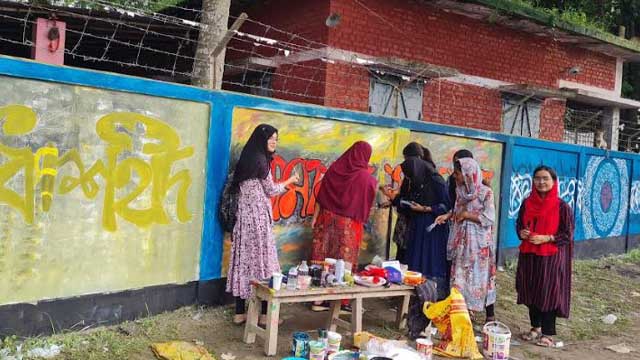 তানভির, শ্রাবন, মিম, নওরিন, রাহুল, রাশেদ, রিজভী, শাহরিয়ারের মতো অনেক তরুণ-তরুণী সকাল থেকে পাত্রে রং ভাগ করে দেয়া, দেয়াল ঘষে উপযোগী করা, প্রাথমিক অঙ্কন, তুলির আঁচড়সহ সব কাজ করছেন।