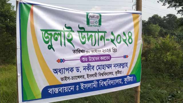 চব্বিশের জুলাই বিপ্লবের স্মৃতি সংরক্ষণের উদ্দেশ্যে ইসলামী বিশ্ববিদ্যালয়ের (ইবি) ক্যাম্পাসে ‘জুলাই উদ্যান-২০২৪’ উদ্বোধন করেছেন বিশ্ববিদ্যালয় প্রশাসন। বুধবার (৩০ অক্টোবর) ক্যাম্পাস লেক সংলগ্ন বোটানিক্যাল গার্ডেন এলাকায় একটি বৃক্ষ রোপণের মাধ্যমে উদ্বোধন ঘোষণা করেন ইবি উপাচার্য অধ্যাপক ড. নকীব মোহাম্মদ নসরুল্লাহ।