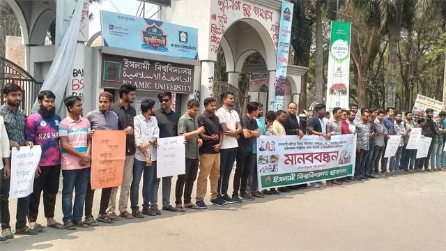 দেশব্যাপী নারীদের বিরুদ্ধে সহিংসতা, নিপীড়িত, ধর্ষণ, অনলাইনে হেনস্তা এবং আইনশৃঙ্খলা পরিস্থিতির সার্বিক ও বিচারহীনতার প্রতিবাদে মানববন্ধন করেছেন ইসলামী বিশ্ববিদ্যালয় ছাত্রদল। ধর্ষণের সর্বোচ্চ শাস্তি মৃত্যুদণ্ড চান সংগঠনটি।
